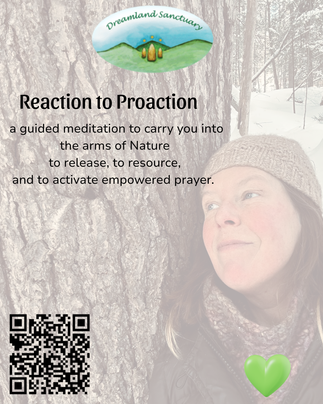 We are here to offer spiritual support of the earthy kind in many delicious forms, including a free audio meditation to gently carry you from Reaction to Proaction in the arms of Nature.